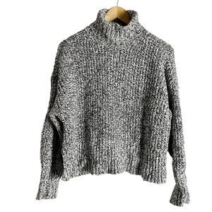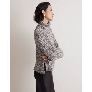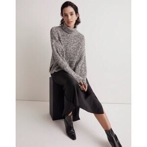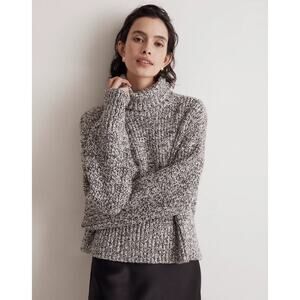 Madewell Marled Wide Rib Knit Black White Turtleneck Sweater Size Small