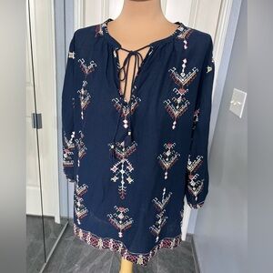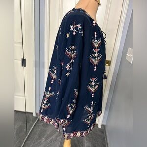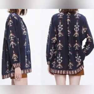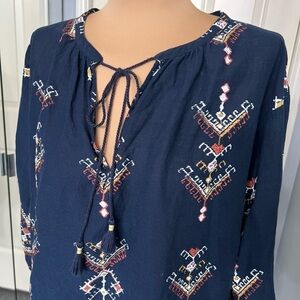 Madewell Marta Navy Aztec Embroidered Boho Peasant Top