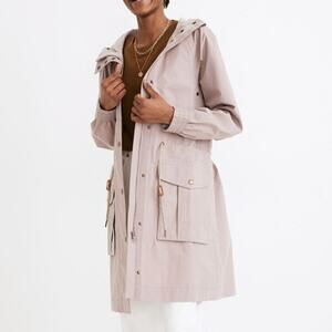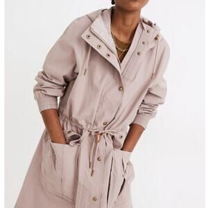 Madewell Rainfall Waterproof Raincoat in Vintage Petal, Long Coat, Jacket, Pink, Mauve, Rose, waterproof anorak, mauve pink, rainfall raincoat, Madewell, women's medium, oversized fit, casual wear, lightweight jacket, weatherproof coat, stylish outerwear