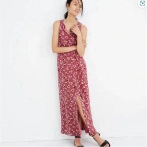 Madewell Maxi Dress Tie Waist Slit Flowy Floral Daisy Sleeveless Pink Mauve XXS