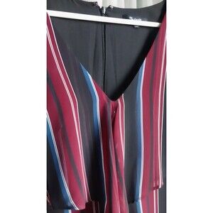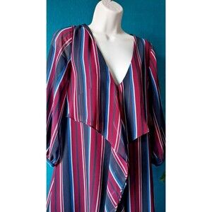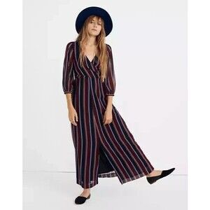 Madewell Maxi Dress Womens 8 Wraparound Black Red Blue Stripe V Neck 3/4 Sleeve