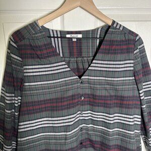 Madewell Medium V-Neck Button-Down Shirt Pineview Plaid 100% Cotton Flannel Fall