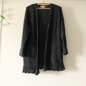 A toss-on marled cardigan in a cotton knit that drapes (and layers) like a dream. Cuffed sleeves and hand-applied fringe make this sweater a design-team favorite.