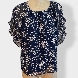Madewell Memento Navy Short Ruffle Sleeve Blouse Large