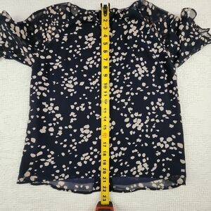 Madewell Memento ruffle sleeve drifting petals top in size extra small. Navy blue with "drifting petal" design. Ruffle sleeves and buttons down the front. 100% polyester. Great pre-loved condition. Approximate flat lay measurements are shown in photos. Sold as pictured.