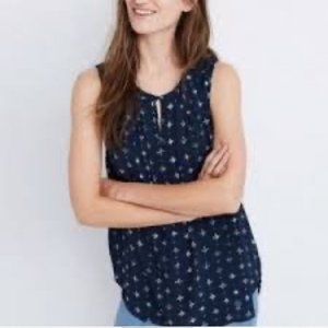 Madewell Memory Medallion Dot Sleeveless Blouse Blue Tank With Keyhole Style XXS