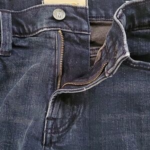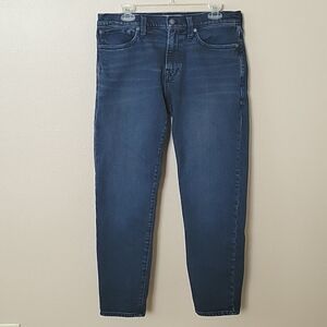 EUC Madewell mens dark wash relaxed taper denim jeans with pockets in front and back and full functioning zipper and button closure