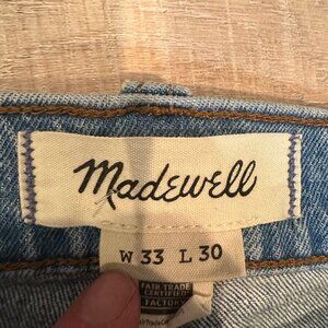 These straight-leg jeans by Madewell offer a classic light wash and durable cotton blend construction. Designed for comfort and style, they are Fair Trade Certified.