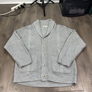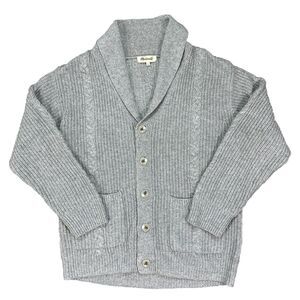 Madewell Mens Merino Wool Shawl Collar Cardigan Sweater Button Up Grey Sz Large