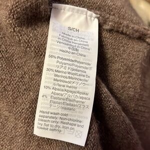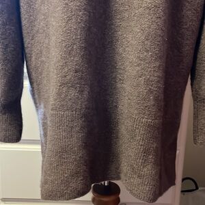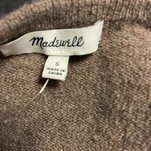 brand new Madewell cardigan sweater in Heather root color that is a blend of polyamide, Merino wool, alpaca, and elastane. It is a bit oversized for that comfy feel and look. Super soft, not scratchy, beautiful sweater that features slits at the sides and a ribbed area on the bottom of the cuffs, as well as the hem, extending about 6 inches up from the hem. Beautiful, go to sweater. I purchased this at Nordstrom rack and was so excited, only to get home and find that I had one almost exactly the same color. I guess I just really love my Madewell sweaters.