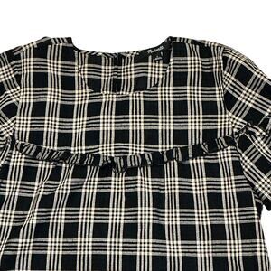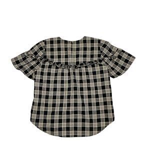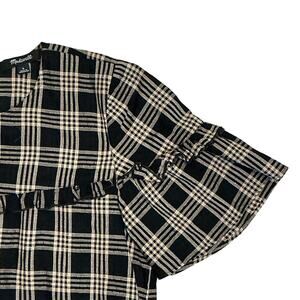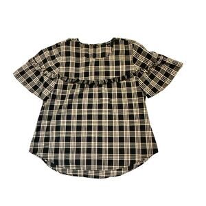 Madewell Metallic Plaid Yoke Ruffle Trim Short Sleeve Top Brown Women's Small