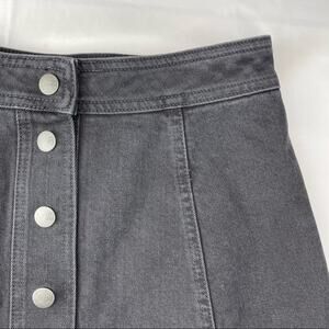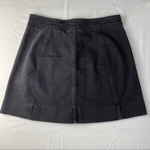 Our best-selling mini returns in best-of-the-best black denim with a touch of stretch. As fuss-free as a pair of jeans, this A-line skirt has snaps down the front for a low-key '70s vibe.