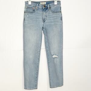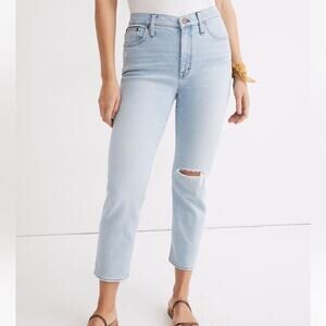 Madewell Mid Rise Classic Straight Jeans Knee-Rip Edition