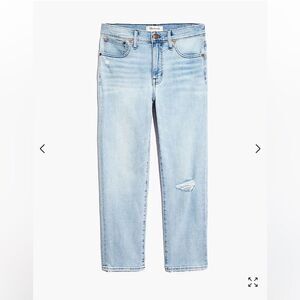 Madewell Mid-Rise Classic Straight Jeans in Wellingfora Wash Knee-Rip Edition 25