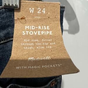 Madewell Mid-Rise Stovepipe Jeans Slim Leg Denim Stretch Blue Size 24 NWT