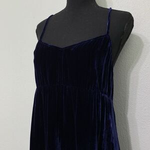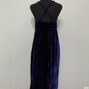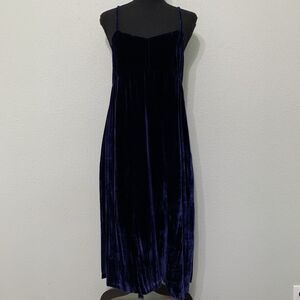 Madewell crushed velvet midi slip dress size small. Side zipper closure. Side slits. Spaghetti straps. Lined. Dark royal blue. New with tags.