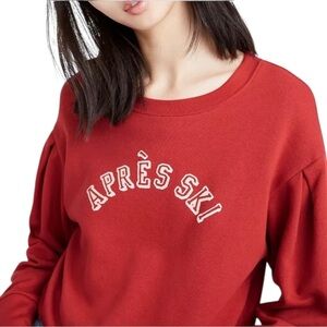 Madewell Miles Après Ski Long Sleeve Sweatshirt Size Medium Pleated Sleeve Red