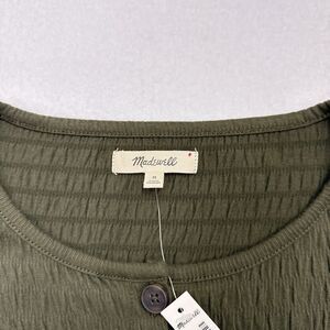 Madewell Mini Dress Medium Green Crinkle Knit Tiered Puff Sleeves Buttons NEW