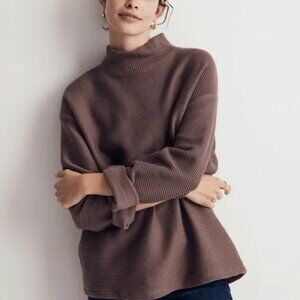 The MADEWELL Funnelneck Drop-Shoulder Top in Weathered Taupe Brown is a stylish sweater for women. Made from cotton in a ribbed knit style, this pullover features a turtleneck neckline and long sleeves. The top also includes stretch for comfort and pockets for added convenience. With its solid brown color and quality Madewell brand, this sweater is a versatile and fashionable addition to any wardrobe. Easy to care for with machine washable fabric, this top is a great choice for everyday wear.