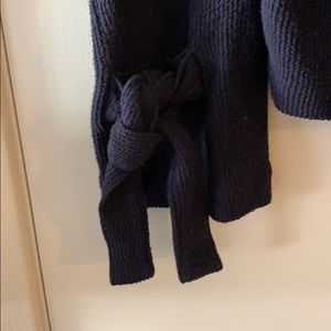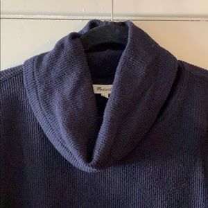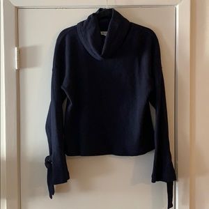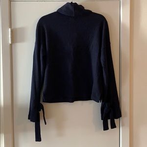 Cute turtleneck top/sweater from Madewell. It’s a navy ribbed 100% cotton. Body fit with a slouchy neck and ties at the sleeves. Super comfortable and cute! Size M, only worn once.