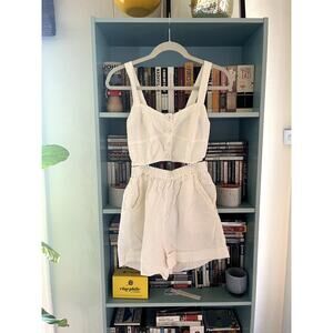 From Madewell: "We love a three-fer, especially in 100 percent lightweight linen. This tank/short combo buttons together into the perfect summer romper with a square neckline and smocked back."
