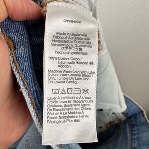 Non-stretch denim, zip fly with button closure, a-line shape, distressed, size 29.