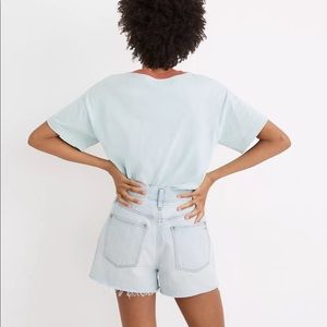 “Freshly updated, these superhigh-rise shorts are fitted through the waist with an easy A-line shape. Made of 100% cotton denim, they come in our best-selling ultra-light wash. High rise, easy fit through hip and leg. Front rise: 12"; inseam: 4". Do Well: For each pair made at the Fair Trade Certified™ Saitex factory, we contribute to a Community Development Fund managed by the workers. Machine wash.” // Runs quite large. Worn only a couple of times, washed & line dried.