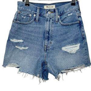 Madewell Momjean Shorts Flintwood Wash Size 23 High Rise Distressed Cotton