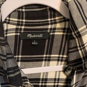 Chic plaid shirt by Madewell. Features a striking black and white pattern. Ideal for everyday style.