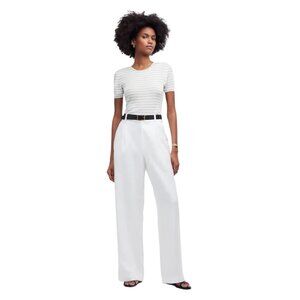 This Madewell Monument Striped Micro-Rib Sweater Tee is the perfect blend of effortless chic and casual comfort. Featuring a slim, curve-hugging fit and a drapey semi-sheer ribbed texture, this tee is designed to flatter your shape while staying lightweight and breathable. The cropped cut hits just above the waistband, making it ideal for pairing with high-rise jeans, skirts, or trousers for a versatile everyday look. Minimalist yet timeless, this striped sweater tee gives off classic ’90s vibes while still feeling modern and fresh. A must-have layering piece for year-round wear.