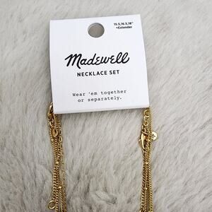 Madewell Mother of Pearl Dainty Layered Necklace Set 3-Pack Vintage Gold NWT