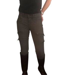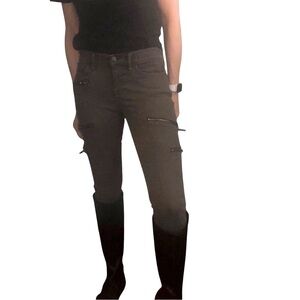 Madewell Moto Skinny Sz 26 Jeans 8” Low Rise Green Gray Zipper Pockets Edgy