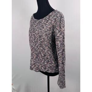 Madewell marled knit sweater women’s medium, multicolor textured pullover, scoop neck cotton blend top, gray pink navy cozy sweater, soft lightweight knit, Madewell fall winter layering piece, classic crewneck pullover, comfy everyday style.