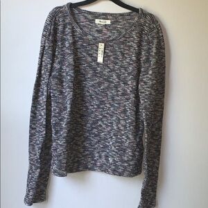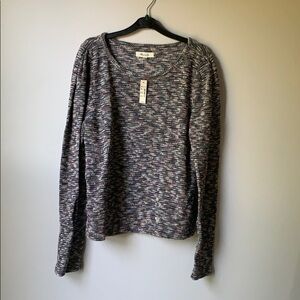 Nubby, soft and oh so versatile, this colorful top can be worn as a shirt or layered like a sweater. Basically, it’s an all-year-rounder. True to size.