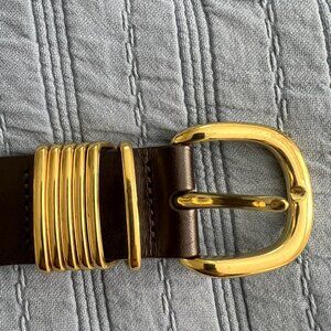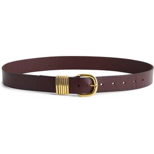 Beautiful Madewell leather belt with gold hardware in a deep, dark brown with cherry undertones. Purchased at full retail from Madewell site in November 2024.