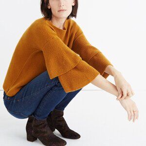 Madewell Mustard Tier Sleeve Boat Neck Pullover Sweater top Size Medium. Golden Harvest color. Acrylic, wool, nylon, spandex. In great used conditions. Open to reasonable offers.