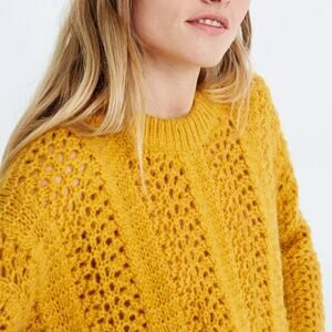Madewell Mustard Yellow Windemere Pointelle Pullover Sweater Open Knit Sz Small