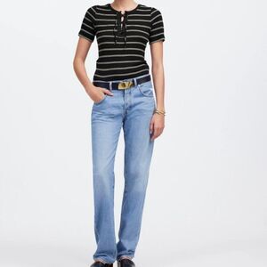 Madewell NU772 Black and white stripe Ribbed Lace-Up Short-Sleeve Tee NWT size x