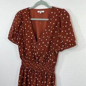 Madewell NWOT Smocked Mini Dress Polka Dot size Small style L3392