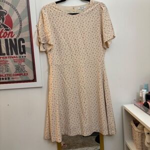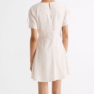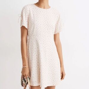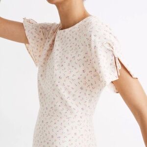 Madewell Tie-Sleeve Retro Dress in Dutch Dandelions, cream background with pink florals, tie shoulder detail, nape button detail, size 8, never worn and in excellent condition.