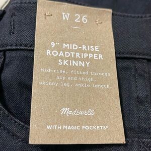 Madewell NWT 9" Mid Rise Roadtripper Skinny Jeans Size 26 in Bennett Wash