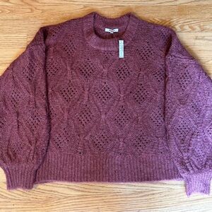 Madewell NWT Cayden Pointelle Balloon-Sleeve Pullover Sweater M Heather Tulip