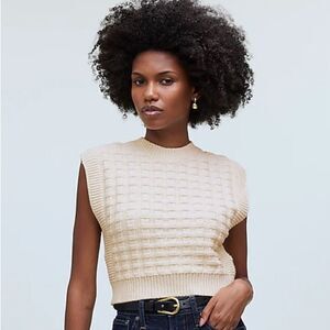 Madewell NWT Checkered Stitch Wedge Sweater Vest Size XS in Antique Cream