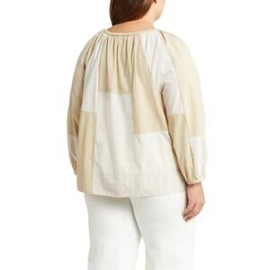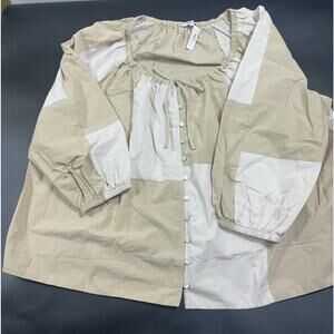 Madewell NWT Patchwork Tie Front Poplin Top in Summer Dune Size 2X MSRP $108