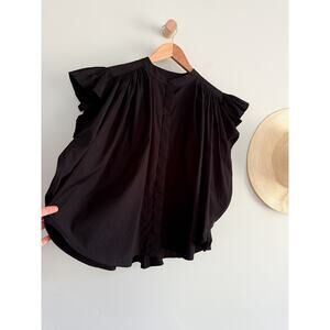 Madewell | NWT | Poplin Shirred Button-Up Shirt in Jet Black | Sz M