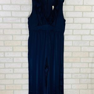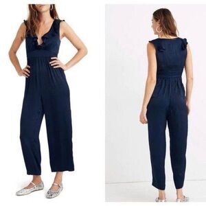 Madewell NWT Dark Nightfall Satin Ruffle Neck Jumpsuit