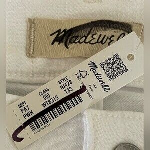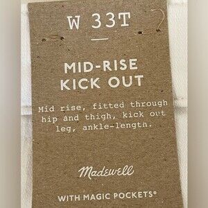 Madewell NWT Tall Kick Out Crop Jeans 33T Mid Rise Ankle Length in Pure White