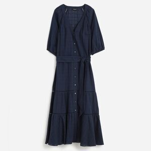 Madewell NWT Tie-Waist Tiered Midi Dress Size 0 in Windowpane Navy