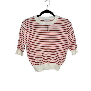 Madewell NWT Women’s Red Cream Striped Textural Stitch Cotton Sweater size XS