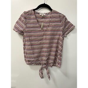 Madewell NWT XXS Boxy V Neck Short Sleeve Tie Front Cotton Mini Plaid Top